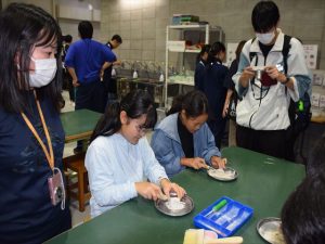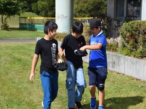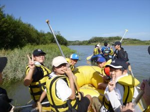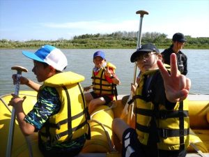 9月17日、18日(水・木)で実施した3校合同の修学旅行無事に楽しく行ってきました。駆けつけてくれたお母さん方や学校に残っている子どもたちに見送られ、予定通り川湯小学校から足寄動物化石博物館へ向かって出発しました。博物館では、化石掘り体験を行いその後で館内を見学し、最後に記念写真を撮りました。その後、子どもたちが楽しみにしていた十勝川下りを3つのグループに分かれて体験しました。2日目の雨で川は増水していましたが、天気にも恵まれ予定通り活動を行いました。途中、ボートを回転させたり他のボートとスピードを競い合ったり、とても楽しく活動できました。なかなか見つけることができなかった十勝石ですが、最後十勝ネイチャーセンターで1個ずつもらって大満足の子どもたちでした。