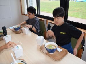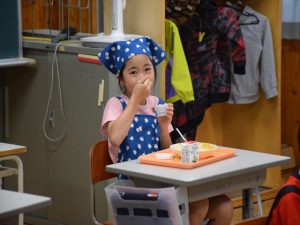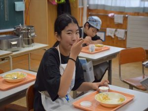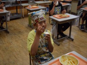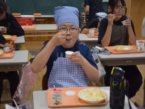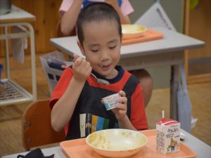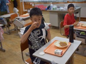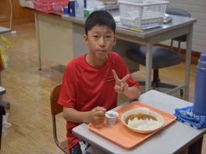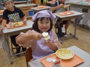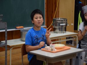 9月25日(木)、ふるさと給食で子どもたちが大好きなアイスクリームが出ました。今回のアイスクリームは牧之瀬牧場さんの生乳100%のアイスです。さっぱりとして後味もすっきりしていますが、牛乳の味がしっかりとしてとっても美味しくいただきました。話は変わりますが、先日の渡辺牧場さんのおっぱい牛乳を撮り忘れて、子どもたちから「牛乳をおかわりして待ってのに…」とクレームが…。今回はその反省からしっかり撮影して回りました。美味しい顔をご覧ください。
