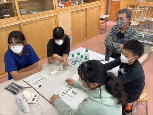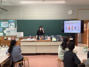 10月2日(木)、中野栄養教諭を講師にお招きし、食育の学習(5.6年)を行いました。今回の学習のテーマは、日常的に飲まれている飲料水に含まれる砂糖の量について学習しました。よく子どもたちが知っている5本の飲料水の中で砂糖が含まれる量が少ない順位を考えました。パッケージにある成分表などをもとに順位を予想していき、砂糖の量と甘みについて学習しました。冷やされているとたくさん砂糖が入っているのに甘みをあまり感じないことに気づき、知らないうちにたくさんの砂糖を取っていることを知りました。食事以外に摂取して良い量は1日分のエネルギーのおよそ10分の1で約200キロカロリーだそうです。つまり糖質は1gあたり4Kcalなので、50gまではとって良いことを知りました。「今度は成分表なども確認しようと思う」などという振り返りも見られました。栄養教諭の中野先生、お忙しい中ありがとうございました。