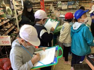 現在1・2年生の生活科で「えがおのひみつ たんけんたい」という学習を行っています。10月2日(木)には実際に地元のお店「きたさん」と加藤水産さんを訪ねて、仕事をする人たちの思いや仕事の仕方や内容について聞き取り、仕事の大変さなどに気づくことをねらいとして校外学習を行いました。子どもたちは仕事をしている人へのインタビューや実際に仕事へ対する思いなどを聞き、学校では学べないことを学ぶ事ができました。ご協力いただきましたきたさんと加藤水産さんの皆様、本当にありがとうございました。
