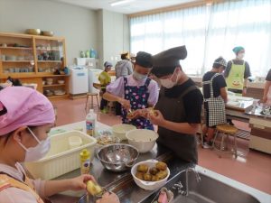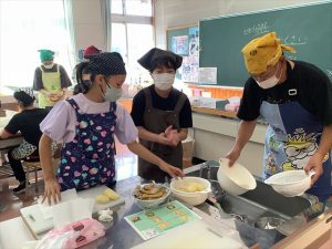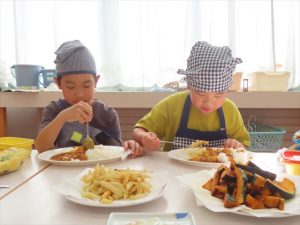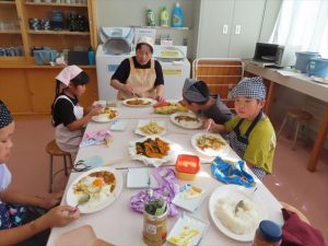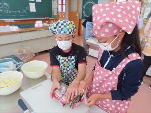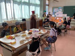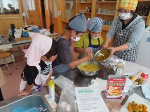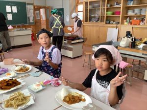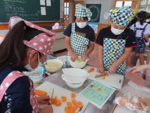 1010月 2025 おなかいっぱい!合同収穫祭 by admin 10月3日(金)、ひまわり学級、たんぽぽ学級、あさがお学級合同収穫祭を実施しました。これまで農園で育てて収穫した作物を使って、カボチャのカップケーキやソーセージカレー、ポテトフライを作りました。カボチャのカップケーキは低学年、ソーセージカレーは中学年、ポテトフライは高学年、それぞれ担当するものを決めて取り組みました。助け合いながら料理を作り上げ、お腹いっぱい食べました。最後に食器洗いなどもしっかりと行い、満足して合同収穫祭を終えました。 Posted in: 未分類