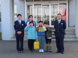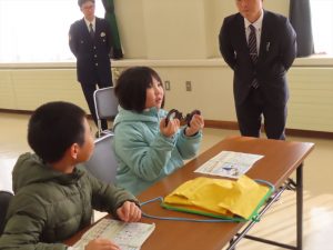 2011月 2025 警察署見学(3年) by admin 11月13日(木)、3年生が弟子屈警察署を見学させていただきました。係の方から警察で行っている仕事などを丁寧に説明をしていただき、真剣に話を聞きしっかりとメモを取りました。竹刀や警棒、手錠にも触らせていただきました。鑑識のお仕事も体験させていただき、子どもたちは大変興味をもって行っていました。また、署長室で署長様とも交流をさせていただき、子どもたちも大興奮でこの学習を終えることができました。警察署の皆様、貴重な体験をさせていただき、ありがとうございました。 Posted in: 未分類