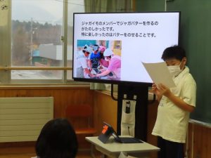 0412月 2025 全校参観日 by admin 11月26日(水)、全校参観日を行いました。1・2年生と5・6年生は道徳の授業を行い、3・4年生は総合的な学習の時間で学んだことを発表しました。お忙しい中にもかかわらず、多くの保護者の皆様や川湯中学校の先生方に参観いただき、ありがとうございました。 Posted in: 未分類