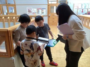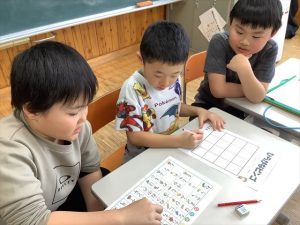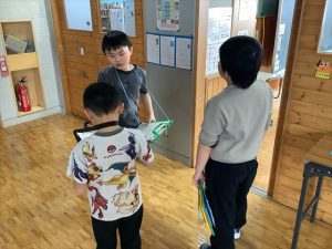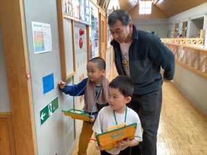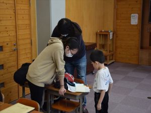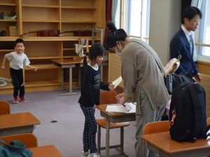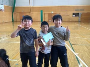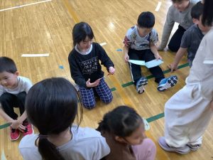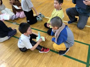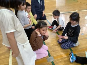 1月30日(金)、来年入学する新一年生を迎えて体験入学及び説明会を実施しました。新入学児童は3名で、とても元気いっぱいの子どもたちでした。控え室だった音楽室に1・2年生の子どもたちがお迎えに来てくれ、嬉しそうに低学年教室へ向かいました。保護者の方々が入学へ向けた説明を聞いている時間に、体験学習を行いました。まず、低学年教室の席についてお兄さんとお姉さんと一緒にひらがなビンゴをするため、グループに分かれて学校の中のひらがなを探しました。最後にレンジでチンというオニごっこをし、体育館を元気いっぱいに走り回っていました。体験入学を終えて音楽室に戻ってきた3名の子どもたちは、お父さんお母さんのところへかけより、体験してきたことを嬉しそうに教えていました。4月に新入生の皆さんが、入学してくるのを楽しみにしています。