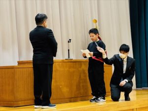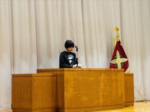 094月 2026 着任式、始業式 by admin 4月9日(木)、着任式と始業式を行いました。今年本校には教頭先生が着任しました。子どもたちも熱い目線を送り、新しい教頭先生を見ていました。着任式では、5年生の男の子から児童を代表して歓迎の言葉がおくられました。また、始業式では、担任が発表されると目をまん丸にしている子や嬉しそうに笑みを浮かべている子など様々な姿が見られました。児童代表の言葉では、6年生の女の子が落ち着いた態度で今年頑張りたいことなどを話していました。式が終わると早速子どもたちは、新しく担任となった先生方に話しかけていました。 Posted in: 未分類