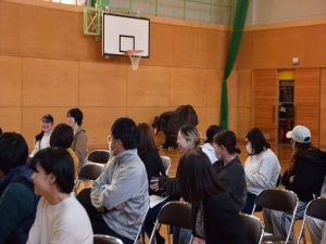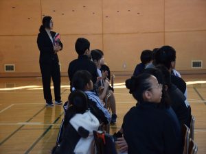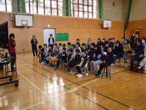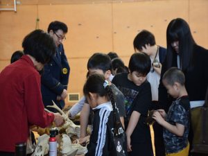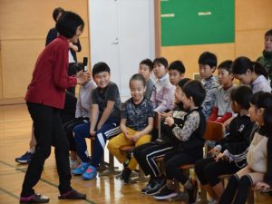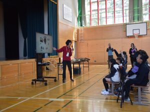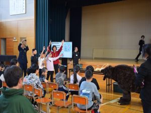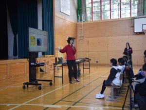 4月19日(日)全校参観日の2時間目、弟子屈町役場農林課と弟子屈警察署様のご協力のもと、熊の生態を知りクマに遭遇した際などの適切な対処法を学ぶことを目的として、野生動物教育研究室WELの橋田真澄さんを講師としてお招き、ヒグマ教室を実施しました。保護者の方々にもご参加いただき、【ヒグマルールを守ろう】【ヒグマについて知ろう】【命へのおもいやり】という3つの柱に沿ってご指導いただきました。ヒグマが食べるものや行動(木登りが得意、冬眠すること)などについて丁寧に教えていただきました。さらに、クマの頭部の骨や毛皮、前足、後ろ足などを子どもたちに見せながら分かりやすくお話いただきました。クマには遭遇しないための方法を教えてもらい、万が一遭遇してしまったときに「驚かせないように注意しながら、ゆっくり手をあげて自分の体を大きく見せて、少しずつ後ずさりしながら離れる」ことを学びました。実際に数名の子ども達が目に出て、ヒグマの着ぐるみを相手に対処法の練習をしました。講師の橋田さんをはじめ弟子屈町役場農林課の皆様、弟子屈警察署の皆様には大変お世話になりました。誠にありがとうございました。